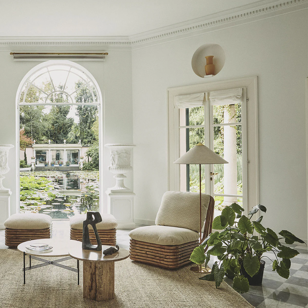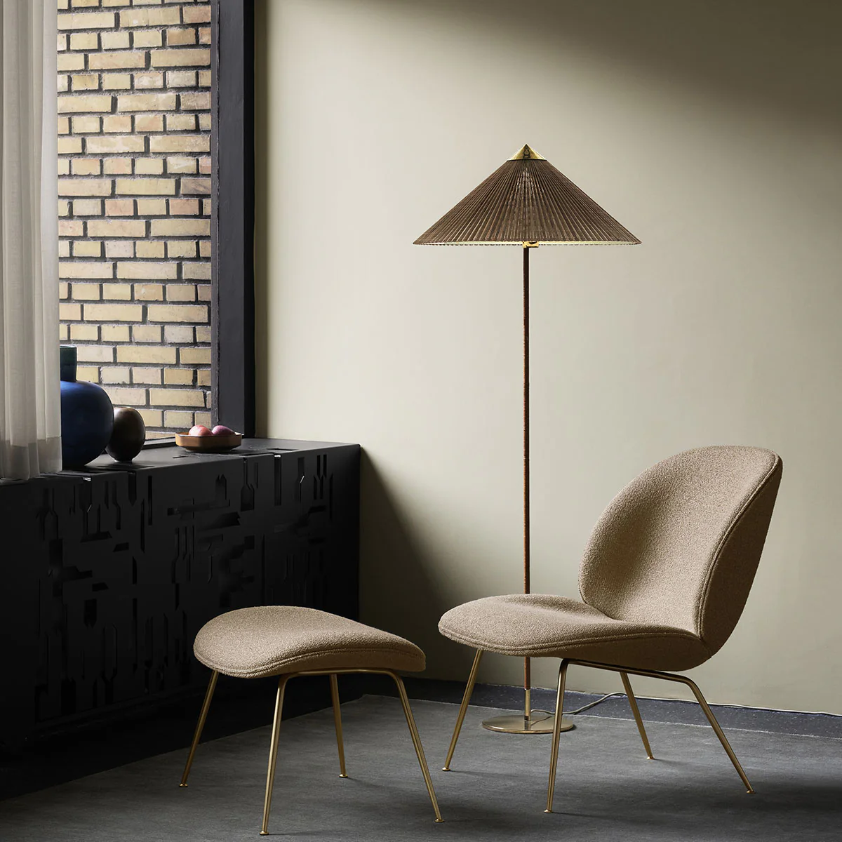 La lampada da terra Gubi 9602, nota anche come “cappello cinese”, è stata progettata da Paavo Tynell nel 1935 per l’Hotel Aulanko. Caratterizzata dal paralume elegante e arioso e dal gambo rivestito in rattan, la lampada da terra 9602 mostra l’immaginazione senza limiti del progettista e la capacità senza precedenti di creare disegni di una bellezza duratura. Aggiungendo una qualità giocosa ed esuberante al top, bilanciata dalla forma più statica della base, la 9602 Floor Lamp è perfetta per creare una delicata luce ambientale nel salotto domestico.