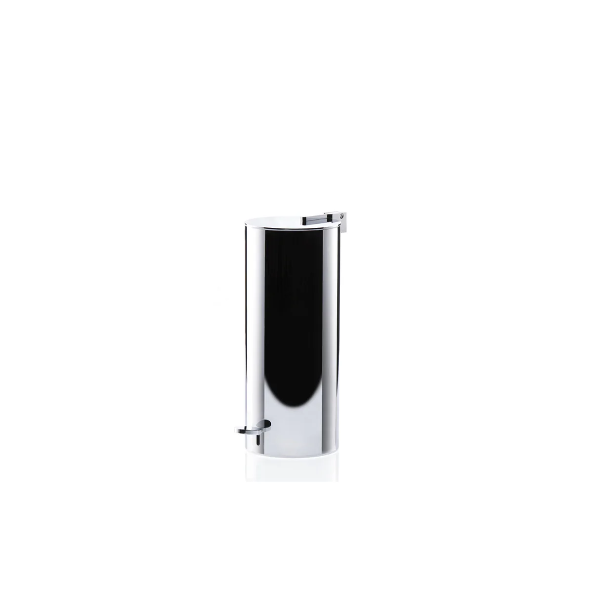 Pattumiera a pedale cromata con contenitore interno.