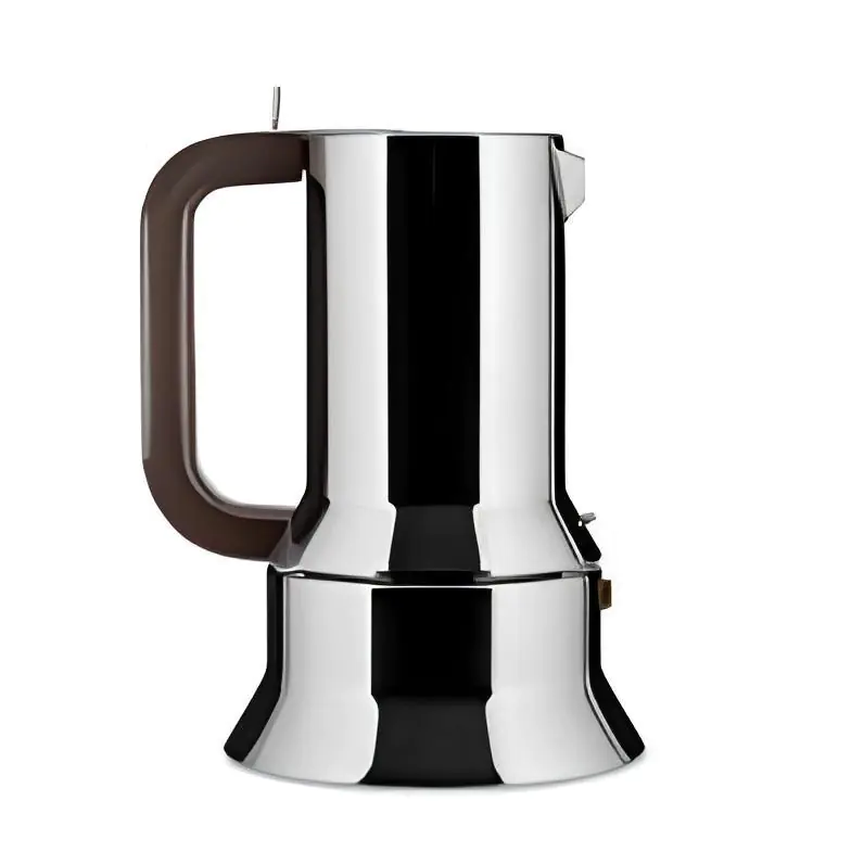 9090 è la prima caffettiera espresso nella storia di Alessi, ma anche il primo di numerosi Compassi d’Oro e il primo oggetto Alessi esposto al MOMA di New York. “Ho voluto dare a questo macchinario le caratteristiche che gli altri non hanno.” Con queste parole Richard Sapper descrive l’idea da cui è partito. 9090 è originale non solo per la sua forma speciale ma anche per alcune innovazioni funzionali come il fondo allargato che permette di massimizzare il calore, il beccuccio antigoccia e il blocco a leva che permettono di aprire la caffettiera con un semplice gesto della mano .
