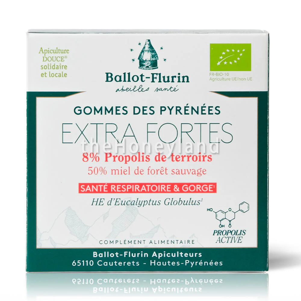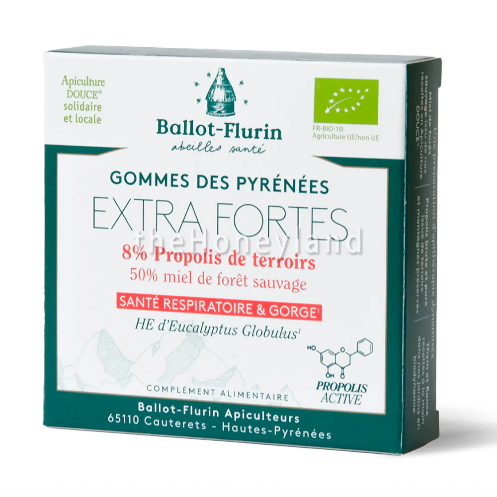 Formula extra-forte con 8% propoli nera, olio essenziale di eucalipto ed estratti di piante dei Pirenei.
