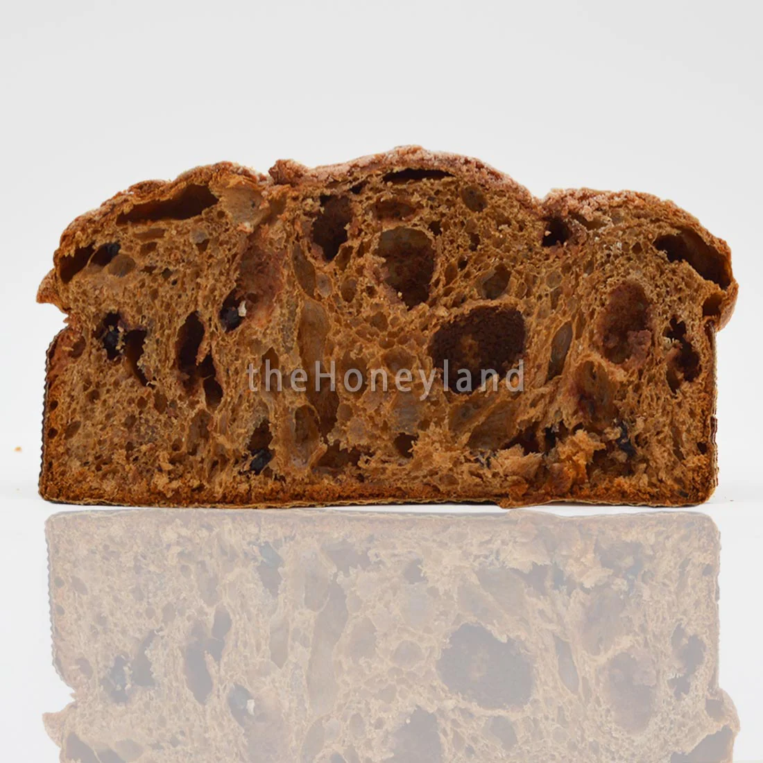 Al taglio si rivela un impasto scuro molto soffice e fragrante. Il connubio tra cioccolato fondente e mirtilli è una vera sorpresa per il palato, dal gusto ricercato ed incontra le esigenze dei più golosi.