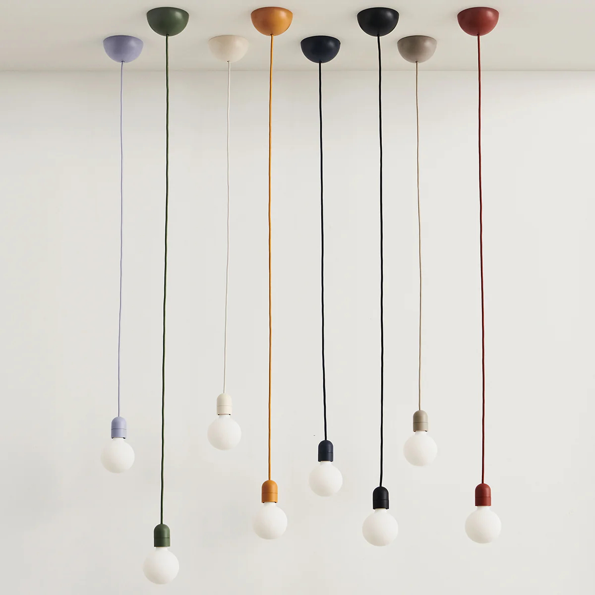 Il Common Cord Set è un versatile set di cavi con componenti in colori coordinati. Disponibile in due varianti, per lampade a sospensione e da tavolo, il set è compatibile con numerose tonalità Hay e può anche essere utilizzato da solo con una lampadina E27. Entrambi i modelli sono disponibili in numerose opzioni di colore per creare una soluzione di illuminazione funzionale e colorata.
