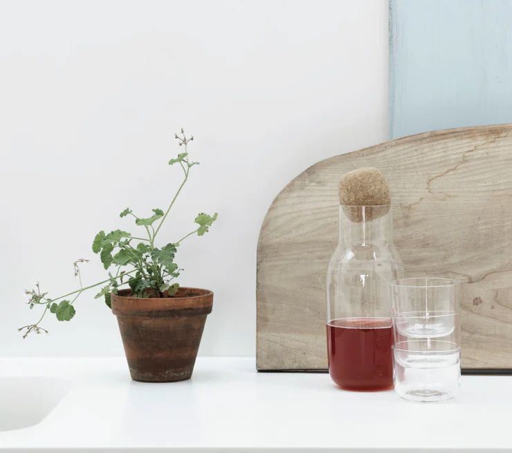 Adorabile la forma semplice di questa caraffa che prende ispirazione dalle classiche bottiglie di latte. Alla silhouette semplice si accompagna un tappo in sughero rotondo che apporta un tocco di calore naturale e insieme autentico. Materiale resistente e isolante, il sughero conserva tutti i tipi di bevande nelle migliori condizioni. La caraffa Corky è quindi l’ideale per servire acqua, vino, latte, succhi di frutta…La dimensione di questa caraffa (Ø 9,9 x A 22,1 cm) è adattata a tutti i tipi di porta frigo. Il suo largo collo permette di inserire facilmente il ghiaccio o pezzi di limone. La caraffa Corky è accompagnata da un set da quattro bicchieri venduti separatamente.