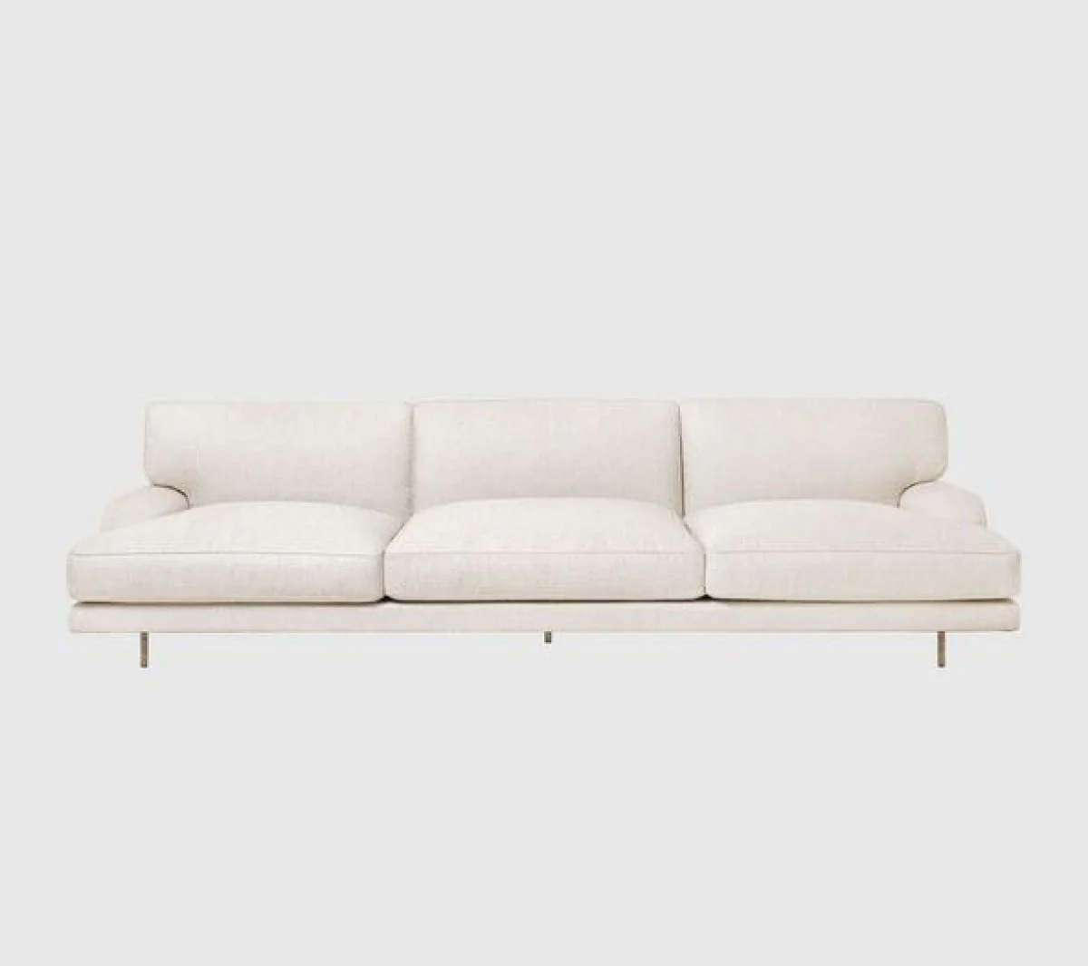 Flaneur è un divano progettato da GamFratesi per Gubi. Disponibile in due finiture per la base ed una vasta gamma di tessuti e pelli per il rivestimento. Flaneur è un divano che fonda il suo concept su una serie di equilibri delicatamente mantenuti nonostante armoniosi contrasti: infatti anche con una forma molto regolare e precisa il divano dona un altissimo livello di comfort, ottenuto da una maestranza artigianale che profuma di classico, per garantire una comodità del tutto contemporanea. GamFratesi, duo italo-danese, rivisita l’iconico divano inglese “roll-arm”, creando un perfetto connubio tra classico e contemporaneo; proporzioni basse e generose, accompagnati da cuscini arrotondati sono sintomi di un approccio italiano al comfort, mentre il design complessivo essenziale, ottenuto da linee semplici e chiare volte alla funzionalità sono chiaramente elementi dal sentore scandinavo. Grazie all’ampia possibilità di personalizzazione per quanto concerne la scelta dei rivestimenti, Flaneur è capace di adattarsi ad una moltitudine di contesti, dal living di un’abitazione alla hall di un hotel passando per una reception di uno studio professionale. Disponibili a parte in tre misure diverse i cuscini Flaneur, elemento imprescindibile per raggiungere un comfort assoluto ed una forma incredibilmente elegante.