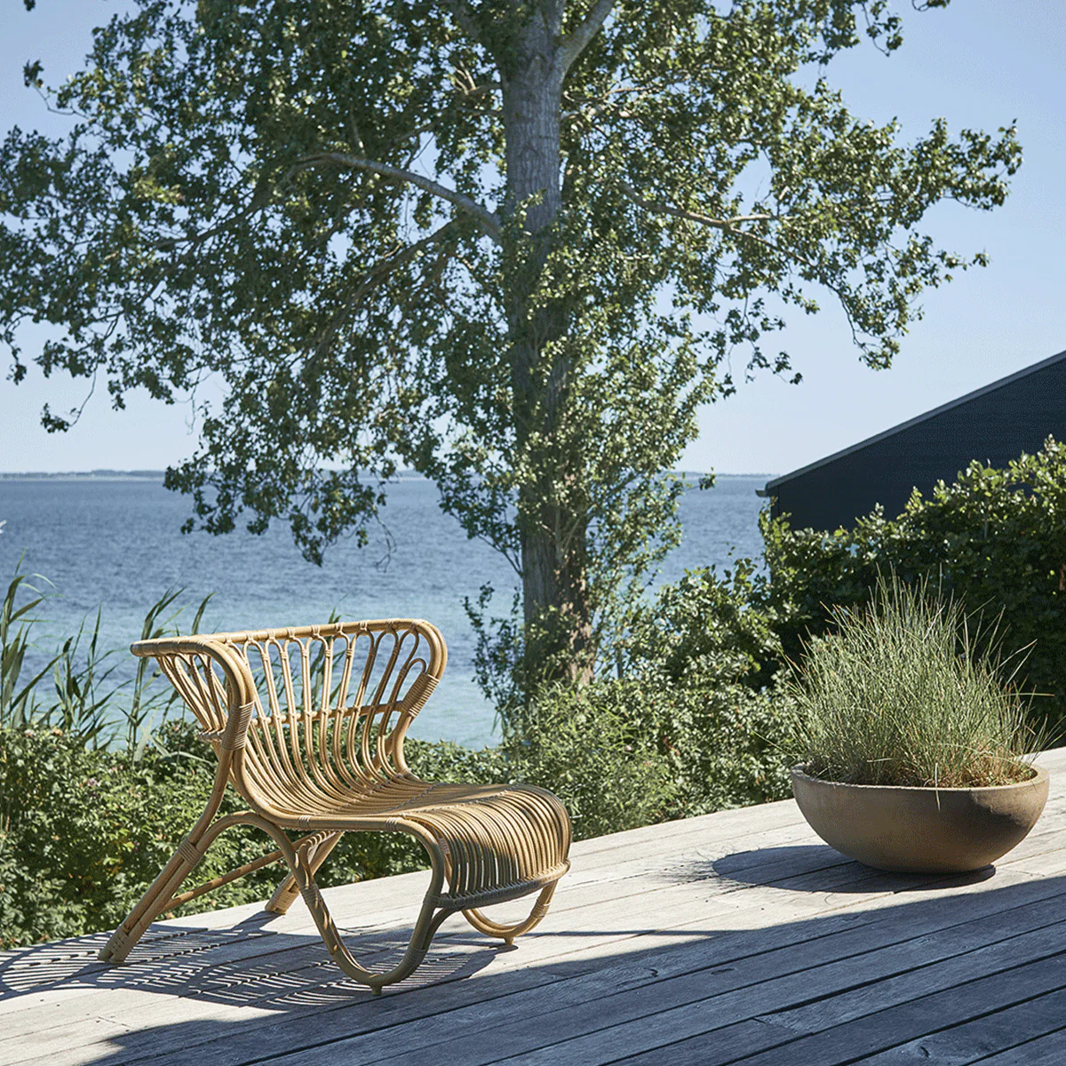 La sedia da esterno Fox, disegnata da Viggo Boesen, è realizzata in rattan e fibre sintetiche che la rendono resistente alle intemperie, in grado di resistere ai raggi UV del sole. Grazie ai materiali resistenti, Fox può resistere a stare all’aperto tutto l’anno senza particolare manutenzione. E’ possibile completare la sedia con un cuscino, disponibile in vari tessuti e adatto per esterni. Le pregevoli legature nella seduta e nello schienale sono realizzate su un telaio di alluminio da abili lavoratori di vimini.