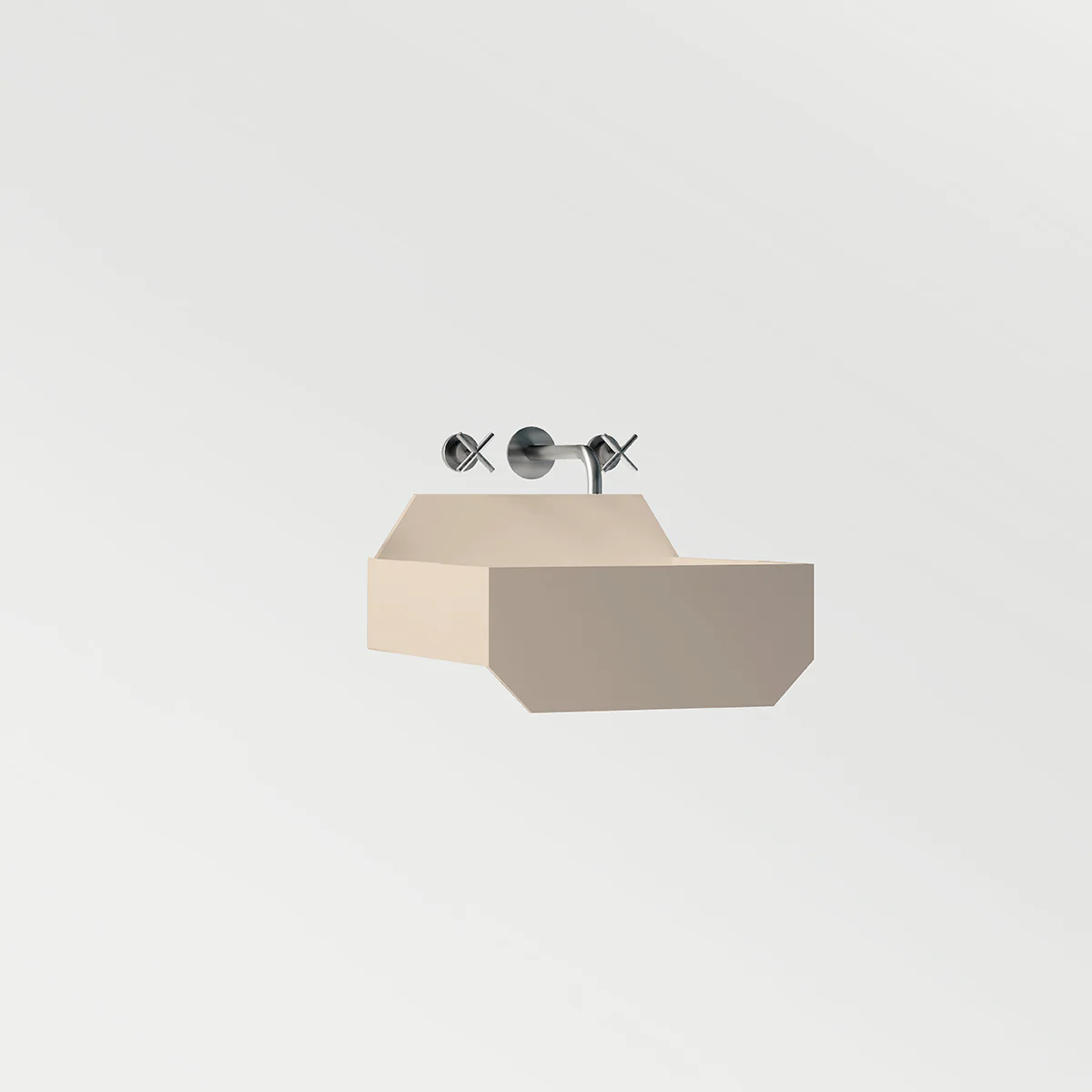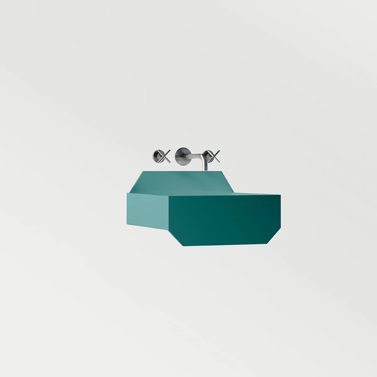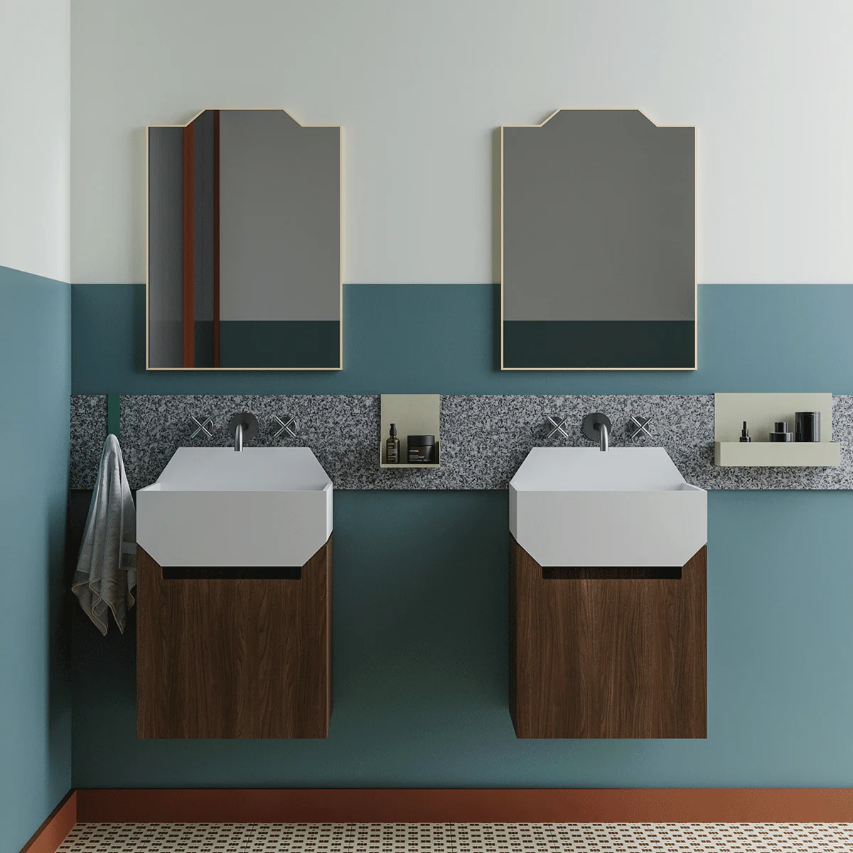 Esteticamente esuberanti, pieni di colore e dalla forte impronta architettonica, i lavabi Frieze si contraddistinguono per le loro forme geometriche. Sono disponibili in diversi materiali, texture e colori: bianco, rosa cipria e blu.