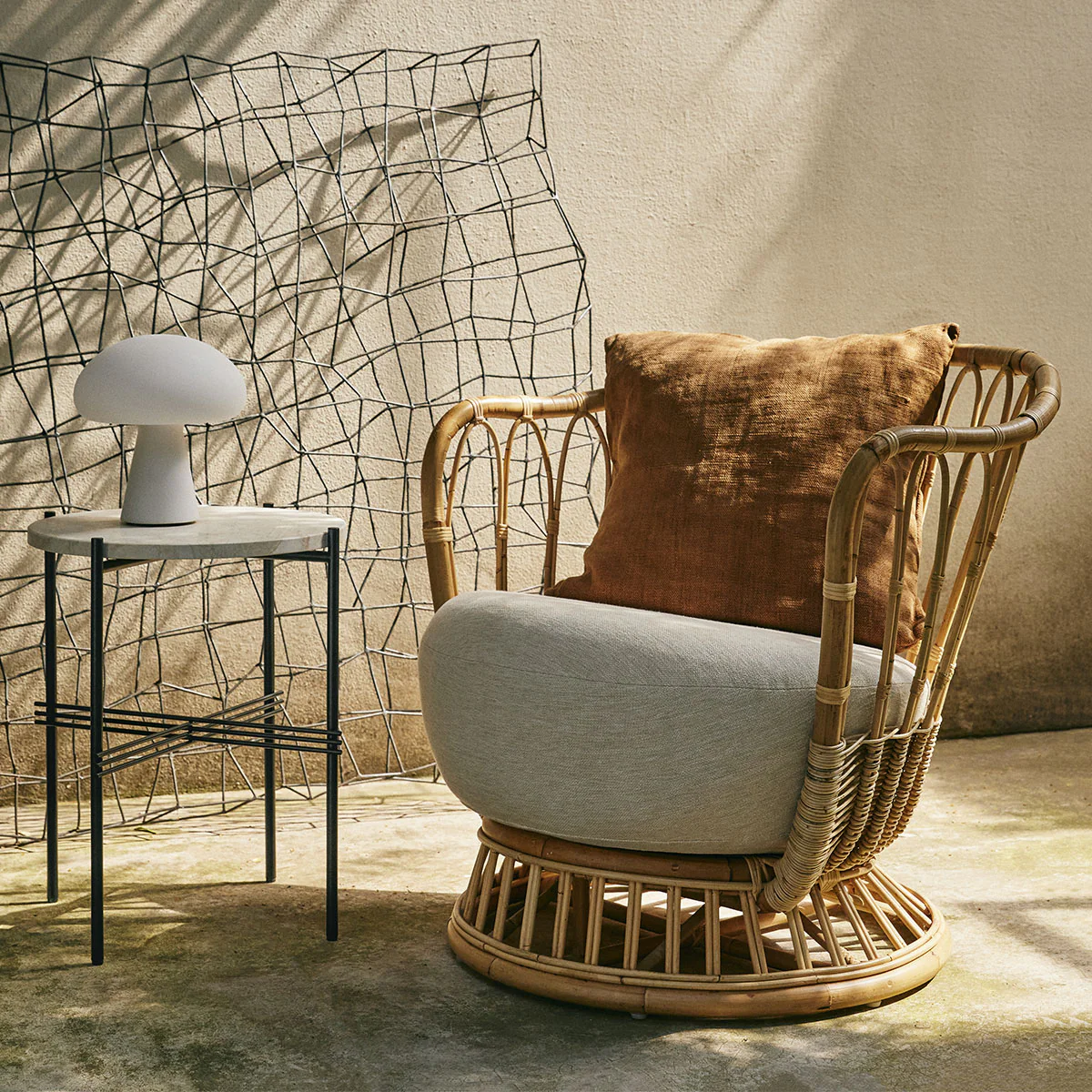 Un compendio elegante, organico e armonioso di curve, la Grace Chair di Tove Kindt-Larsen guida la rinascita contemporanea del materiale sostenibile e naturale in rattan. Ispirata dalle morbide curve dei ciottoli e del legno galleggiante che raccoglieva dalle spiagge della Danimarca settentrionale, l’architetto e designer Kindt-Larsen ha immaginato una raffinata eleganza della poltrona informale in rattan. Con le sue curve ampie e delicate e gli intricati anelli di rattan flessibile, sostiene una seduta generosa e imbottita e avvolge un cuscino posteriore morbido e morbido. Insieme, offrono comfort, tattilità e leggerezza che portano l’esterno all’interno, mentre le caratteristiche della struttura in rattan le conferiscono una naturale robustezza e longevità. La bellezza senza tempo del design del 1936 di Tove Kindt-Larsen e la sostenibilità del materiale in rattan rendono la Grace Chair un’aggiunta altamente versatile e popolare alla collezione Gubi. Con una scelta di opzioni di rivestimento disponibili, può aggiungere luce e consistenza a una casa e un’accoglienza informale ma elegante agli interni di hotel o aziende.
