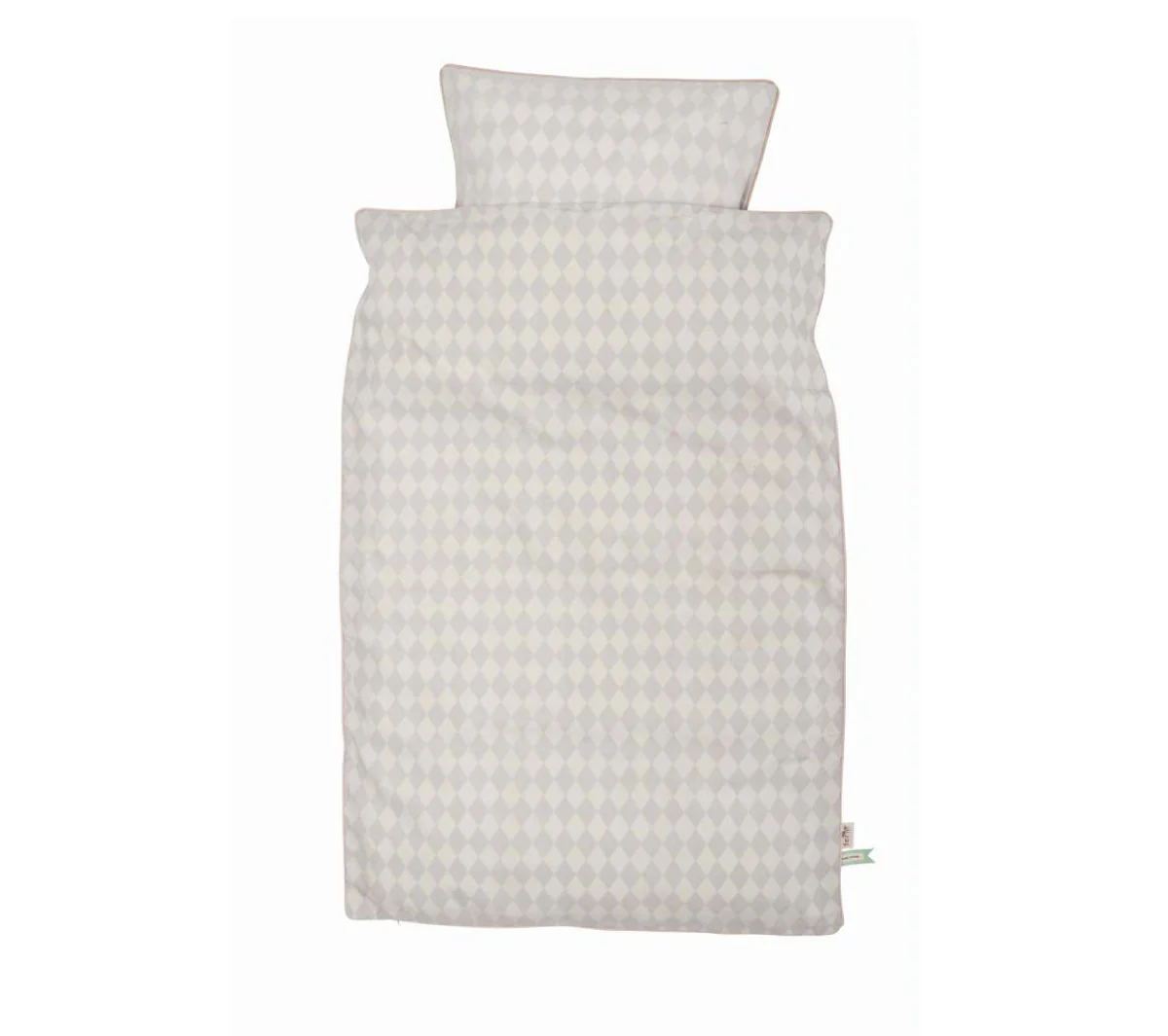Coordinato letto in cotone per bambini., realizzato in 100% cotone biologico e con l’interno in piuma chiuso da una cerniera.
