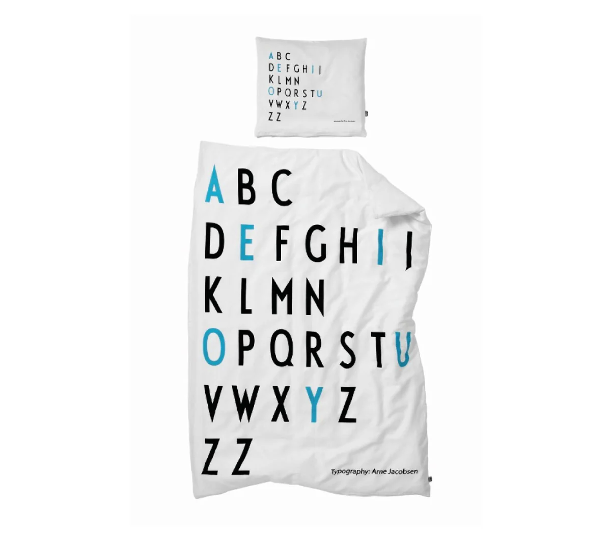 Completo letto per bambini con disegno dell’alfabeto colore turchese