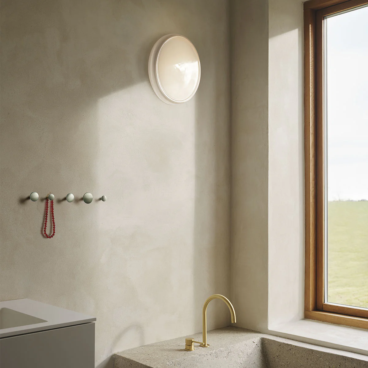 La lampada da parete/soffitto Looped offre un design completamente illuminato con una luce morbida e dimmerabile. Il vetro soffiato a bocca a tre strati con bordi arrotondati crea un delicato effetto 3D che cambia a seconda dell’angolazione, proiettando un alone di luce con anelli cangianti sulla parete o sul soffitto. Con il suo design monomaterico, il corpo diventa la lampada stessa, conferendo una presenza discreta ma efficiente. Elegante nella sua ripetizione, impreziosisce corridoi e soffitti con un’illuminazione ambientale e funzionale. Il LED integrato, non sostituibile dall’utente, garantisce una funzionalità di lunga durata. La versione IP44 è progettata per resistere all’umidità e agli schizzi di luce, rendendola una scelta adatta e raffinata per l’uso in bagno.