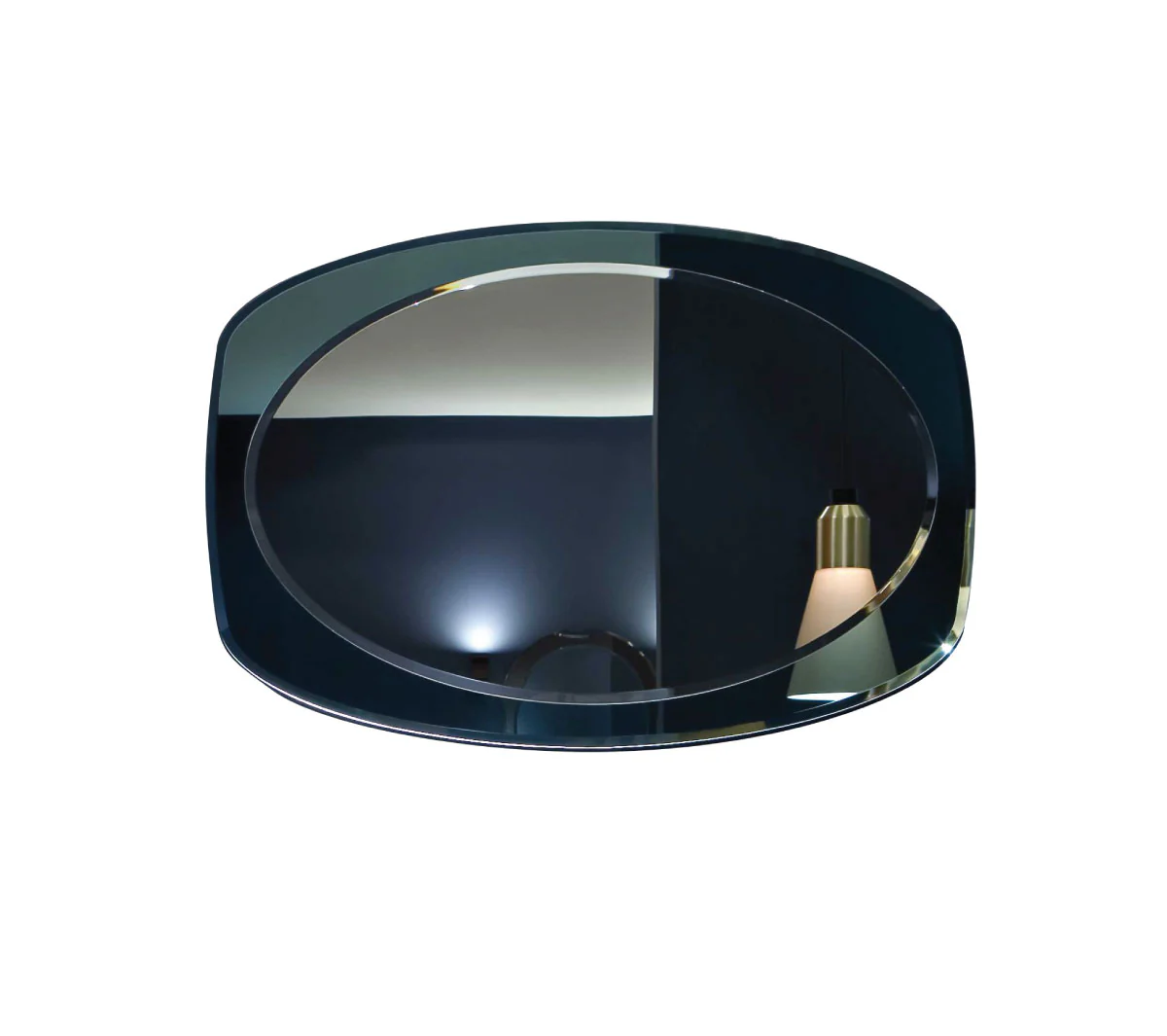 Specchio ovale orizzontale o verticale, molato con cornice in cristallo colorato argentato nel colore acquamarina
