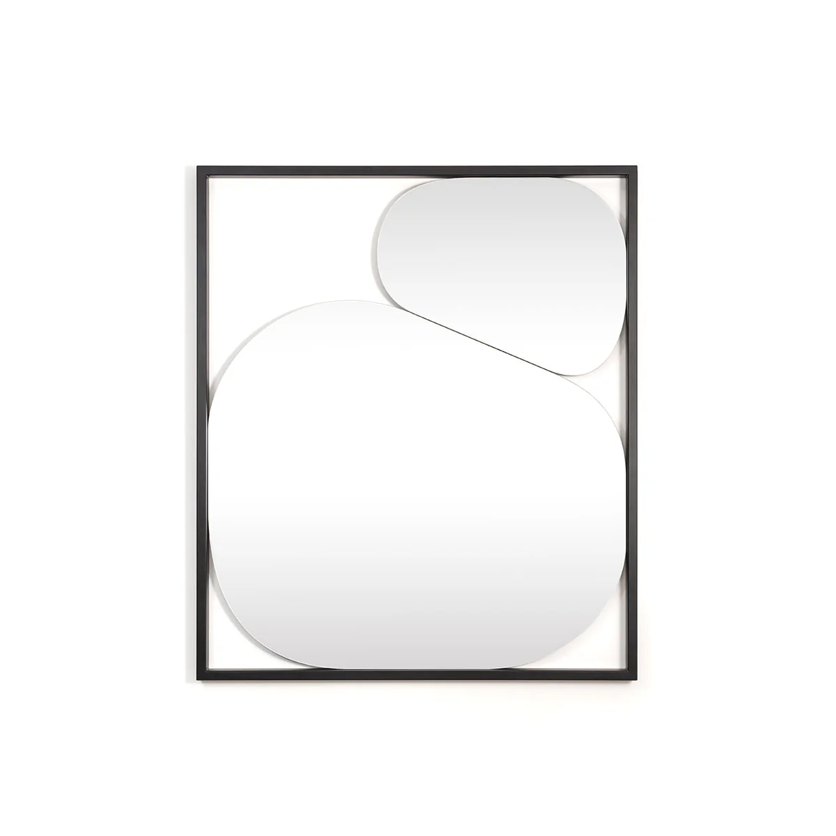 Ogni modello interpreta questa idea in modo diverso, dando vita a superfici irregolari e fluide, mai perfettamente simmetriche. Le deformazioni suggeriscono un movimento congelato nel tempo, con linee morbide e continue che richiamano forme naturali, sempre mantenendo un equilibrio visivo raffinato. A incorniciare il tutto, una struttura in alluminio verniciato nero che definisce il perimetro con discrezione ed eleganza.