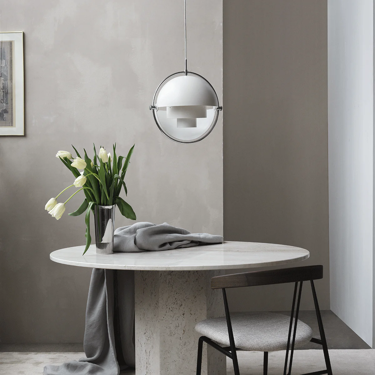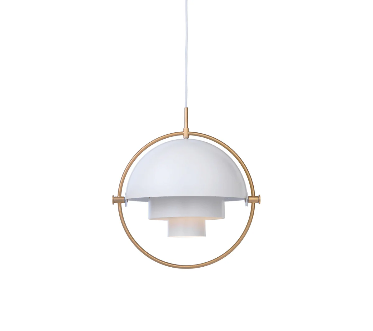 Multi-Lite è una lampada a sospensione disegnata da Louis Weisdor per Gubi nel 1972. È realizzata in metallo, è disponibile in sette finiture. Il design dinamico permette di muovere le due sezioni complementari in modo da direzionare la luce verso l’alto, verso il basso o in modo asimmetrico. È possibile così avere una lampada sempre diversa.
