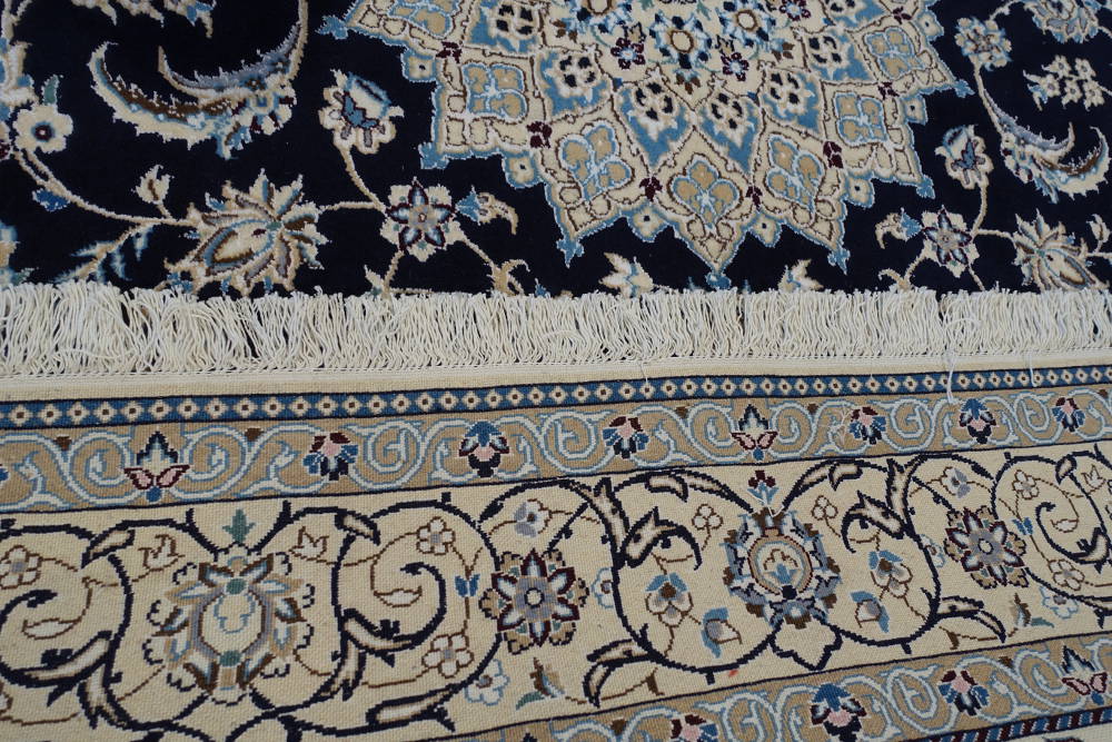 Questi tappeti sono annodati a mano nella città di Nain, nella persia centrale. Pur avendo disegni tradizionali con rosone centrale, utilizzano colori molto chiari, con fondo bianco panna e molte sfumature del blu ed hanno pertanto una predominanza di colori freddi. Trovano pertanto una facile collocazione sia in ambienti con arredamenti classici che moderni.