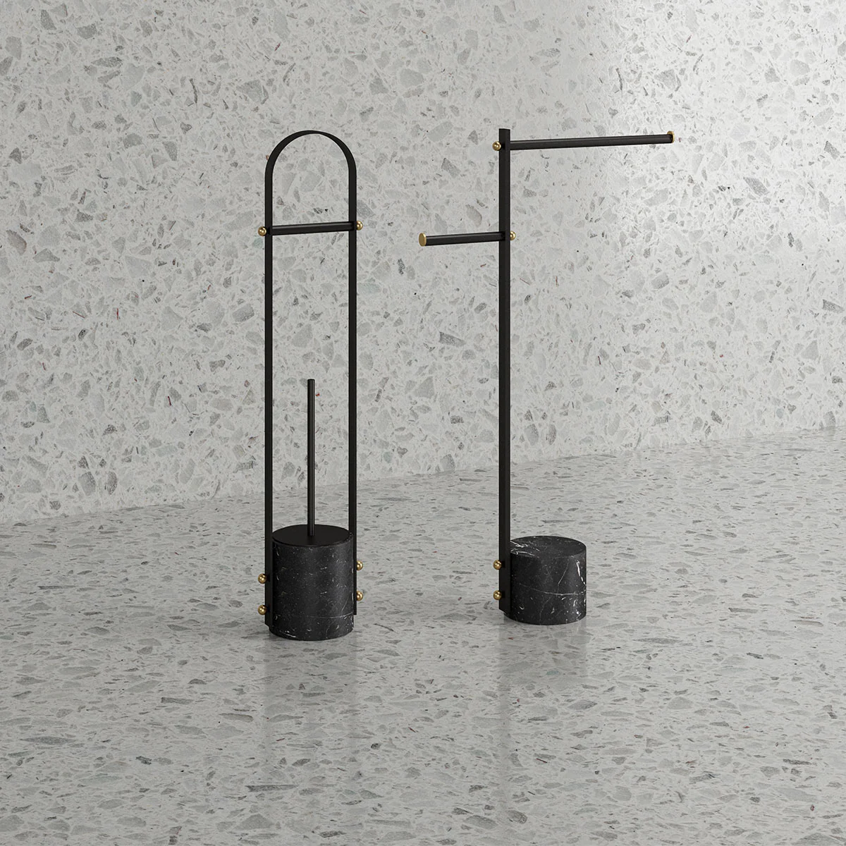 La collezione Nouveau, presentata per la prima volta a Maison&Objet a Gennaio 2019, si arricchisce di una linea di accessori bagno completa: porta asciugamani, portarotoli freestanding o a parete, appendiabiti, mensole e due specchi beauty. Ritroviamo anche negli accessori gli accenti Art Déco che si compongono a livello formale di geometrie semplici come la sfera, il rettangolo e il cilindro. La sfera in ottone rende la serie di accessori decorativi e allo stesso tempo funzionali.