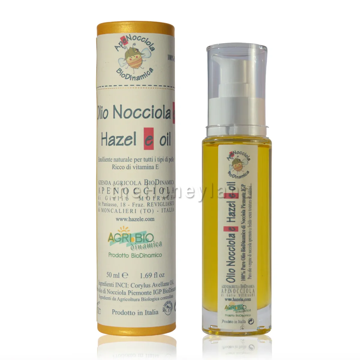 Olio di nocciola alimentare biologico spremuto a freddo. Solo da nocciole biodinamiche crude e NON Tostate.