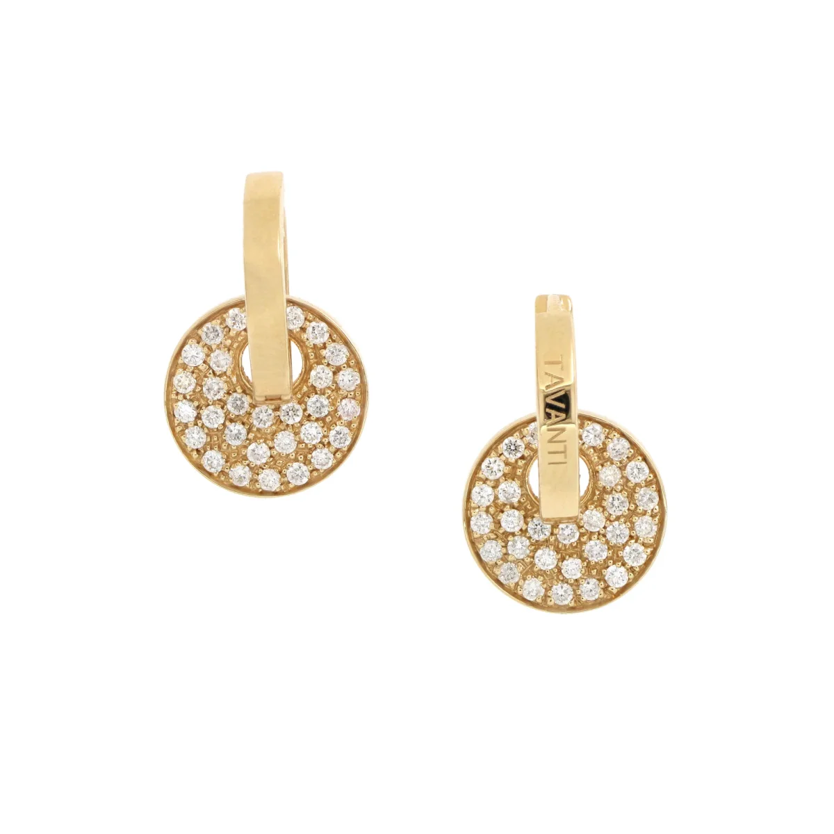 Reso unico da un pavé di diamanti bianchi, questo set di orecchini in oro 18 kt è caratterizzato da un charm circolare, esaltando uno stile che combina gusto estetico e lavorazioni pregiate. I diamanti nobilitano il pendente in oro giallo creando magici giochi di luci e ombre. Grazie alla forma lineare e al design moderno, questo set di orecchini rappresenta un vero must-have da indossare tutti i giorni.