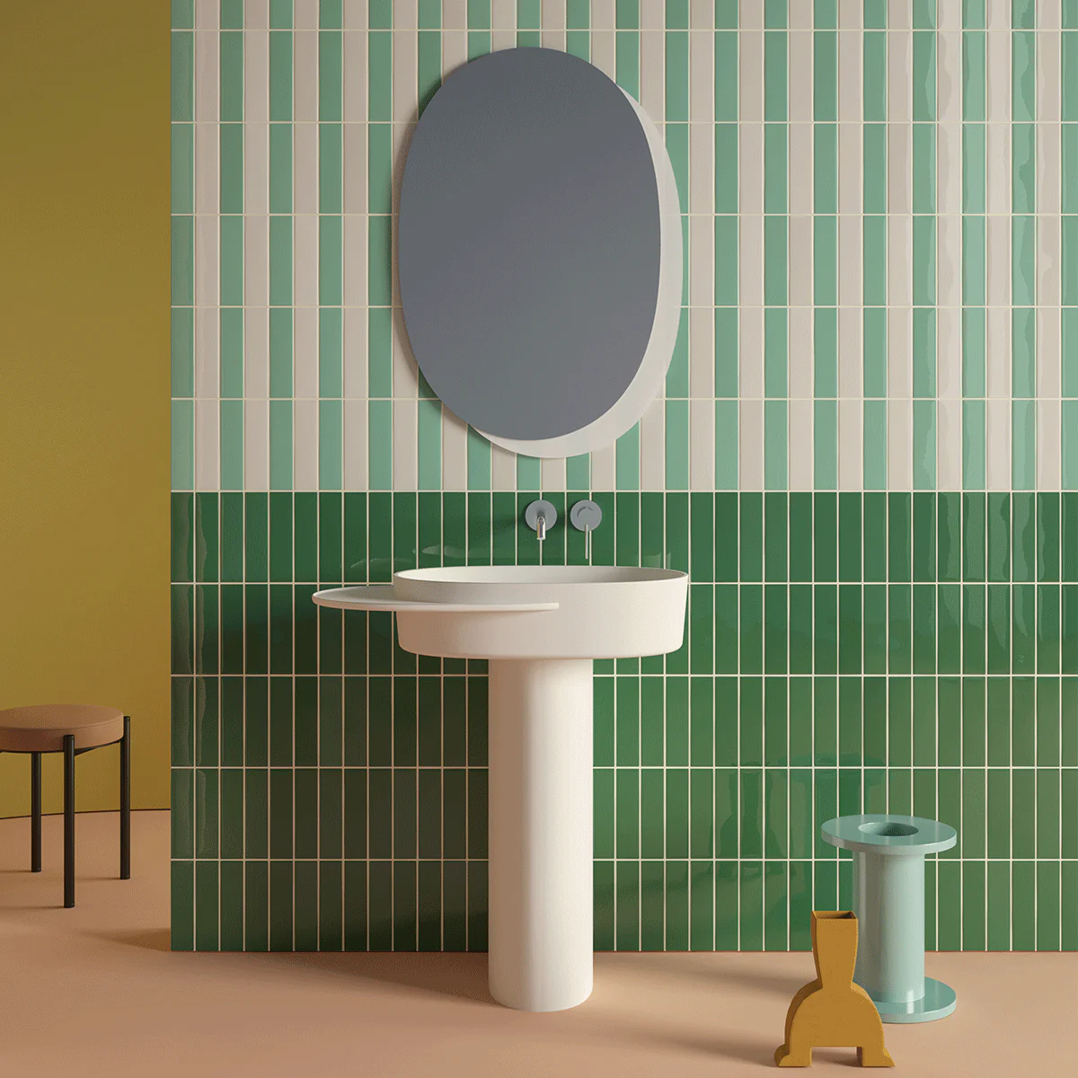 Lavabo autoportante che unisce estetica e funzionalità caratterizzato dal plateau laterale che contraddistingue l’intera collezione. A seconda delle esigenze, il lavabo Plateau può essere realizzato con il vassoio a destra, a sinistra e, per gli amanti di uno stile minimal, senza vassoio. La colonna è disponibile con scarico a terra o a parete.