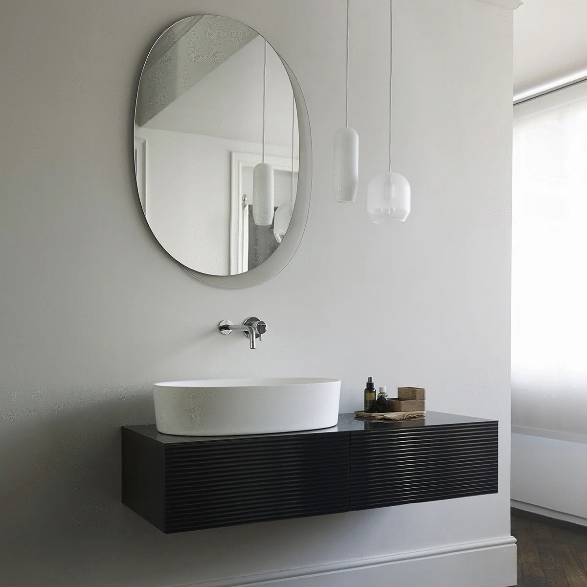 Lavabo che unisce estetica e funzionalità caratterizzato dal plateau laterale che contraddistingue l’intera collezione. A seconda delle esigenze, il lavabo Plateau può essere realizzato con il vassoio a destra, a sinistra e, per gli amanti di uno stile minimal, senza vassoio. Disponibile con colonna freestanding o da appoggio, anche il lavabo Plateau è realizzato in LivingTec, un materiale composito, appositamente studiato per soddisfare i più alti standard di qualità, tecnologia e ambiente.