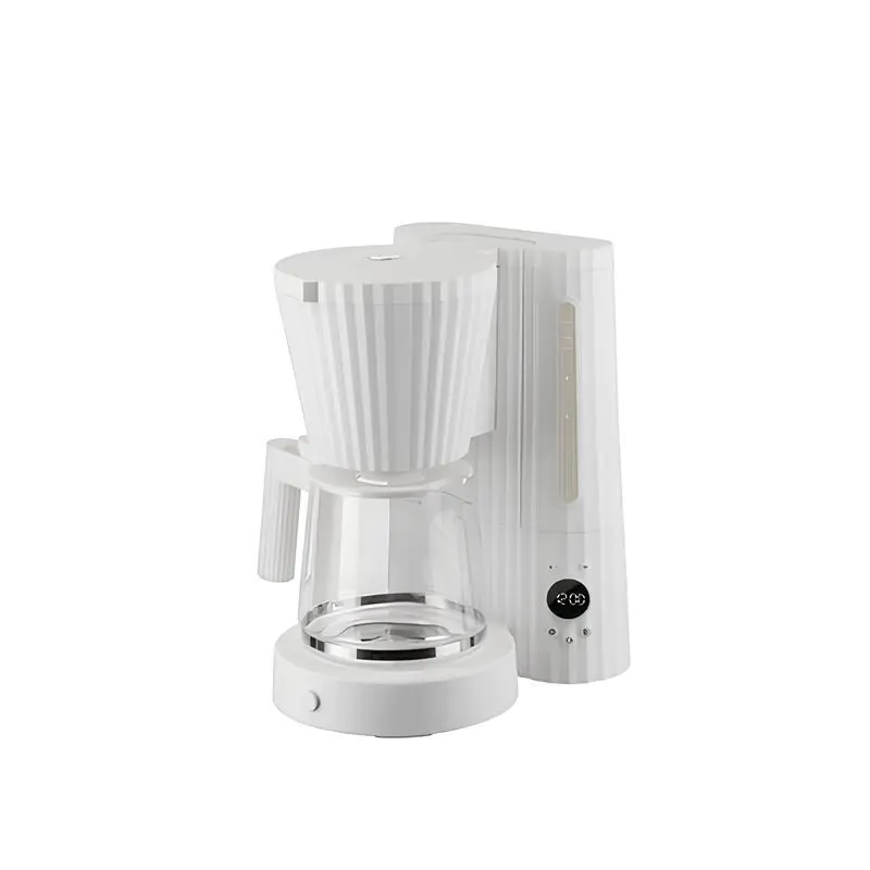 Ti presentiamo Drip Coffee, l’ultima aggiunta all’iconica collezione Plissé. Progettata da Michele De Lucchi, questa macchina da caffè con filtro combina funzionalità versatile con eleganti volumi plissettati, rendendola un’aggiunta elegante a qualsiasi interno. Perfetto per preparare grandi quantità di caffè con un’eccezionale estrazione dell’aroma, Drip Coffee migliora i momenti di tranquillità quotidiani e può essere utilizzato a casa per un’accogliente birra in famiglia o per preparare il miglior caffè per i tuoi colleghi di lavoro. Svegliati con il delizioso profumo del caffè appena preparato grazie alla funzione di avvio automatico. Espandi la tua collezione e abbraccia l’arte della preparazione del caffè con Drip Coffee di Alessi.