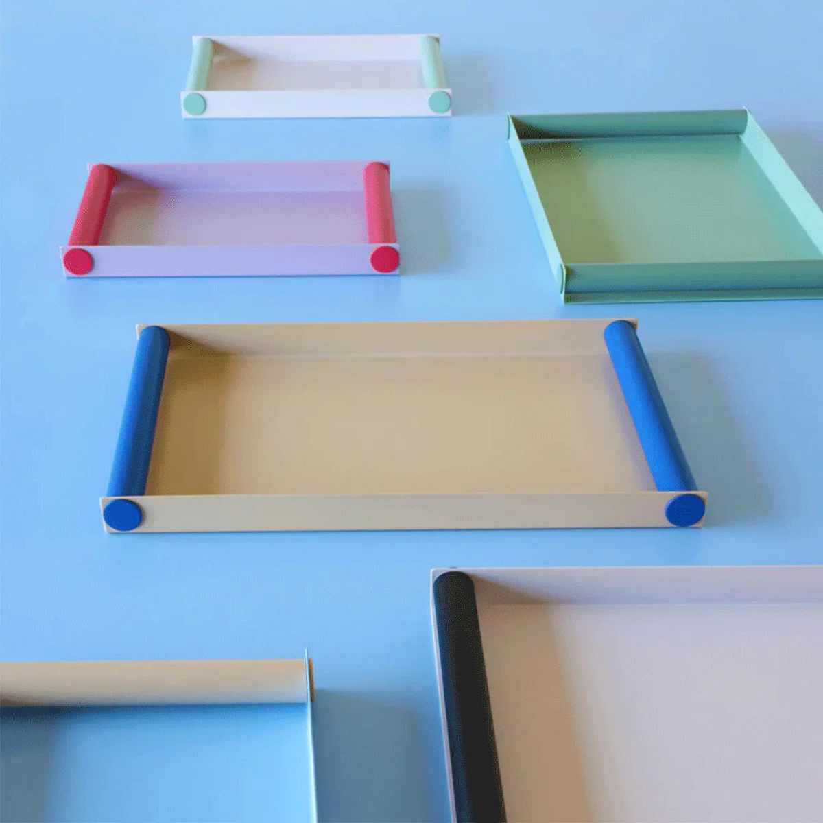 Vassoio da decorazione e da portata in tenui colori con finitura opaca. Perfetto come elemento decorativo o per riporre oggetti di uso comune, in soggiorno o nel bagno.