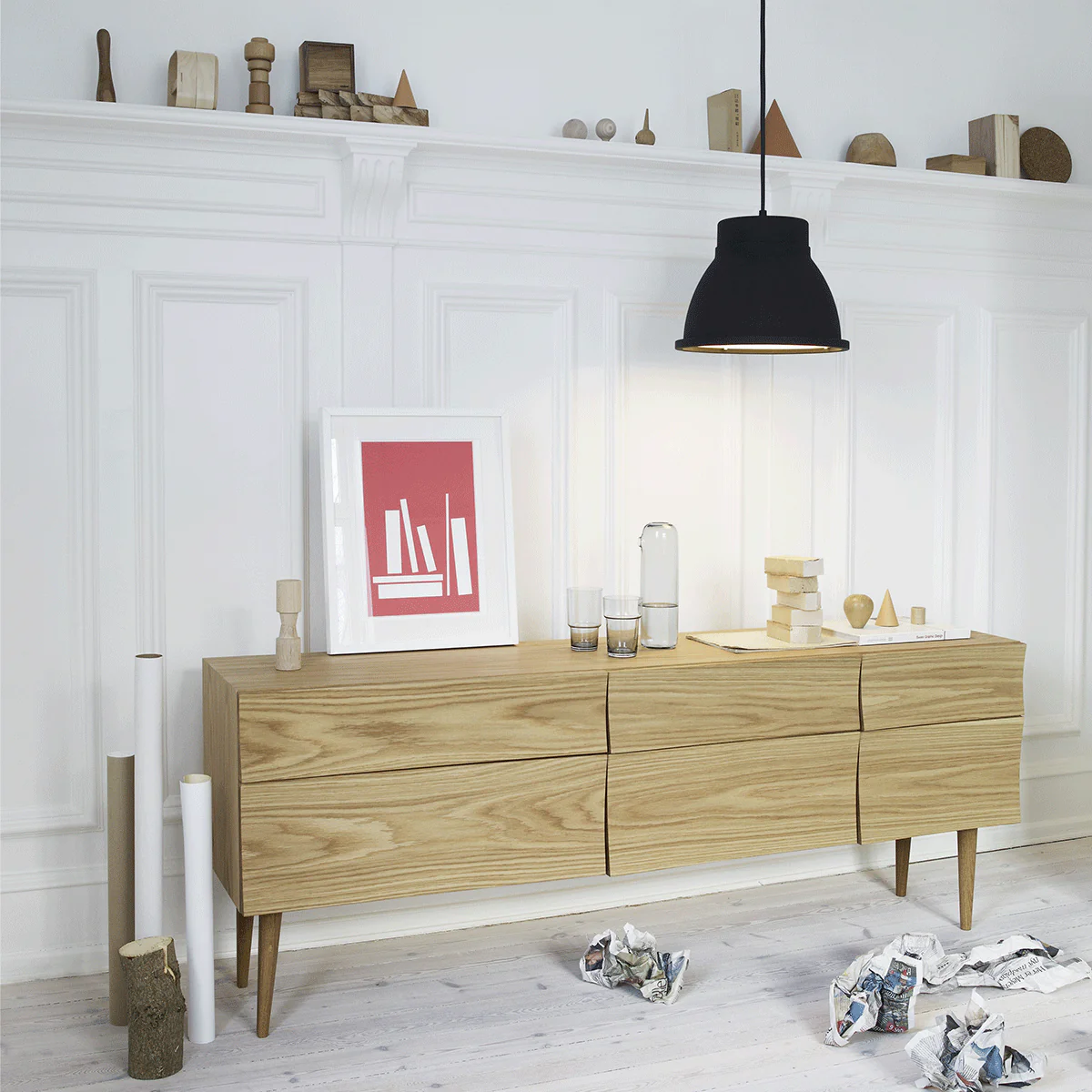 Reflect è una credenza con cassetti disponibile in due dimensioni, large e small, caratterizzata da quell’incredibile e unico fenomeno per il quale è stata immaginata: la luce naturale della Scandinavia. I quattro angoli di ogni facciata anteriore hanno un unico spessore e un’unica curva che permette alla luce di riflettersi, rendendo ogni elemento di arredo della famiglia Reflect vivo e attraente. Il design e l’abilità artistica di Reflect fanno spiccare il meglio del legno di quercia sottolineando il suo carattere naturale e caldo. Reflect rappresenta un omaggio alla falegnameria scandinava classica, ma attraverso l’aggiunta di particolari dettagli moderni, possiede la sua espressione unica.