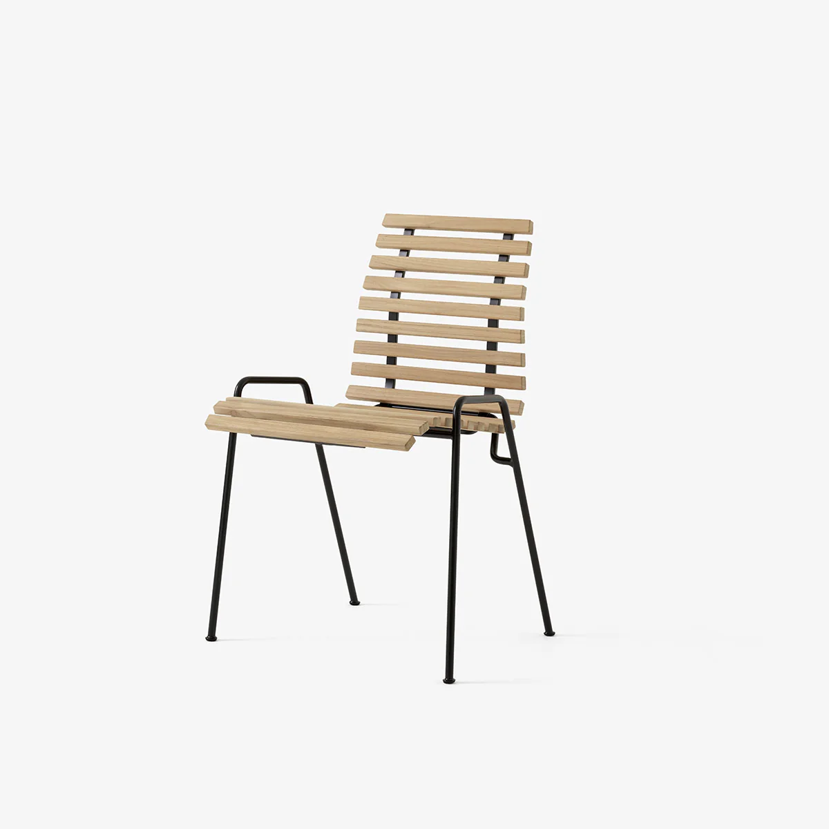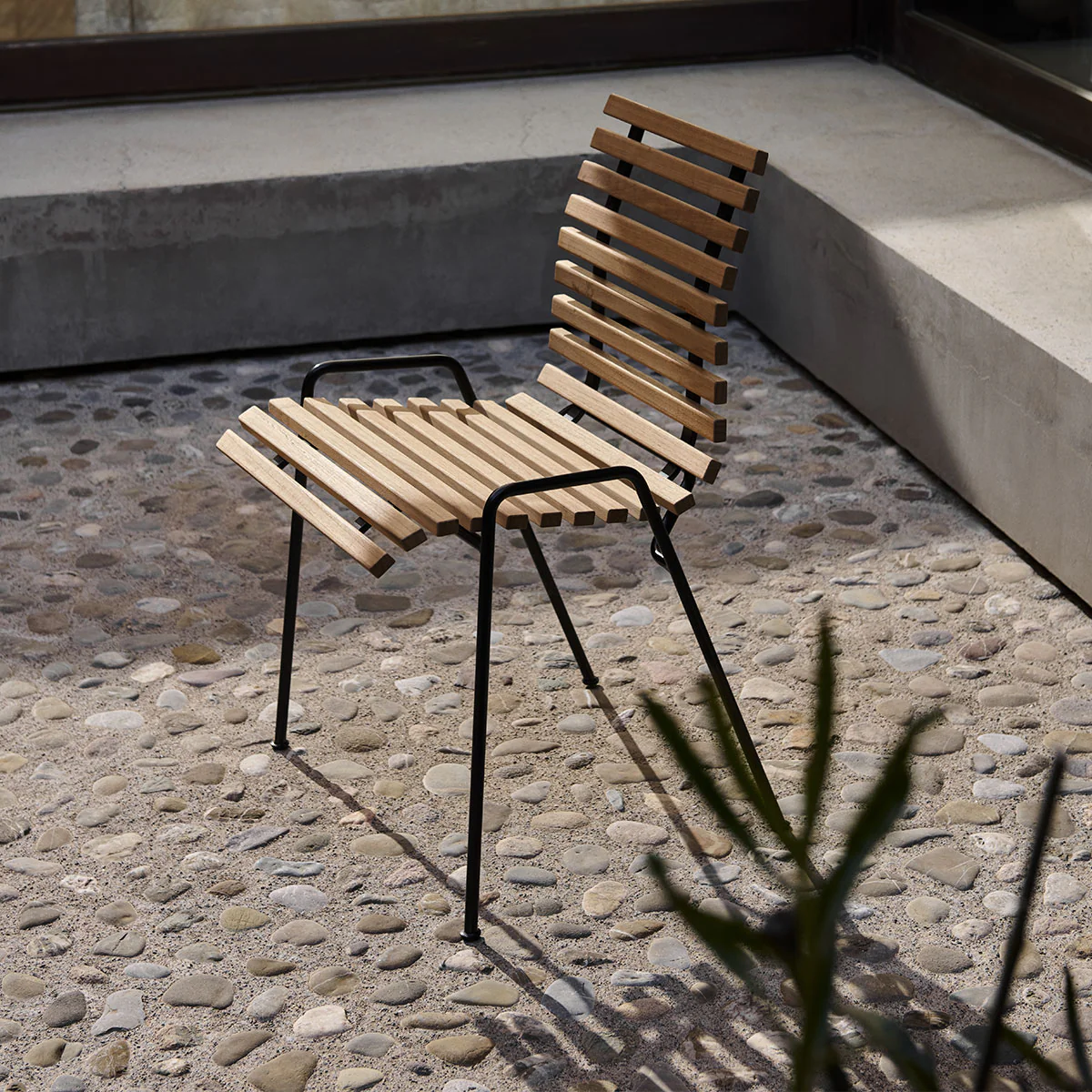 La sedia RFH Terrace è stata originariamente progettata da Robin Day per completare la terrazza esterna della Royal Festival Hall di Londra. Piccola nelle proporzioni e decisamente semplice nella costruzione, la sedia Terrace è realizzata con una combinazione di doghe in teak e una solida struttura in acciaio, che le conferisce un’estetica distintiva e organica.