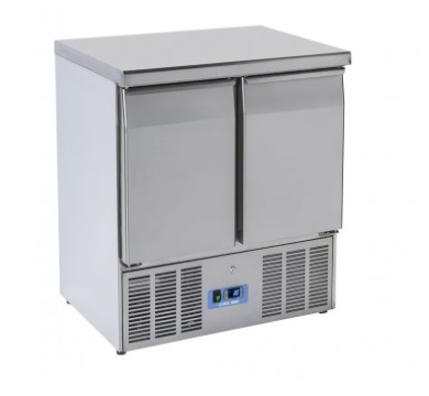 Saladette interno ed esterno inox AISI 304, temperatura 0/+8°C. due sportelli GN, Dimensioni mm.900 x 700 x 882. Peso Kg.86. Capacità litri 214.Porte autochidenti.