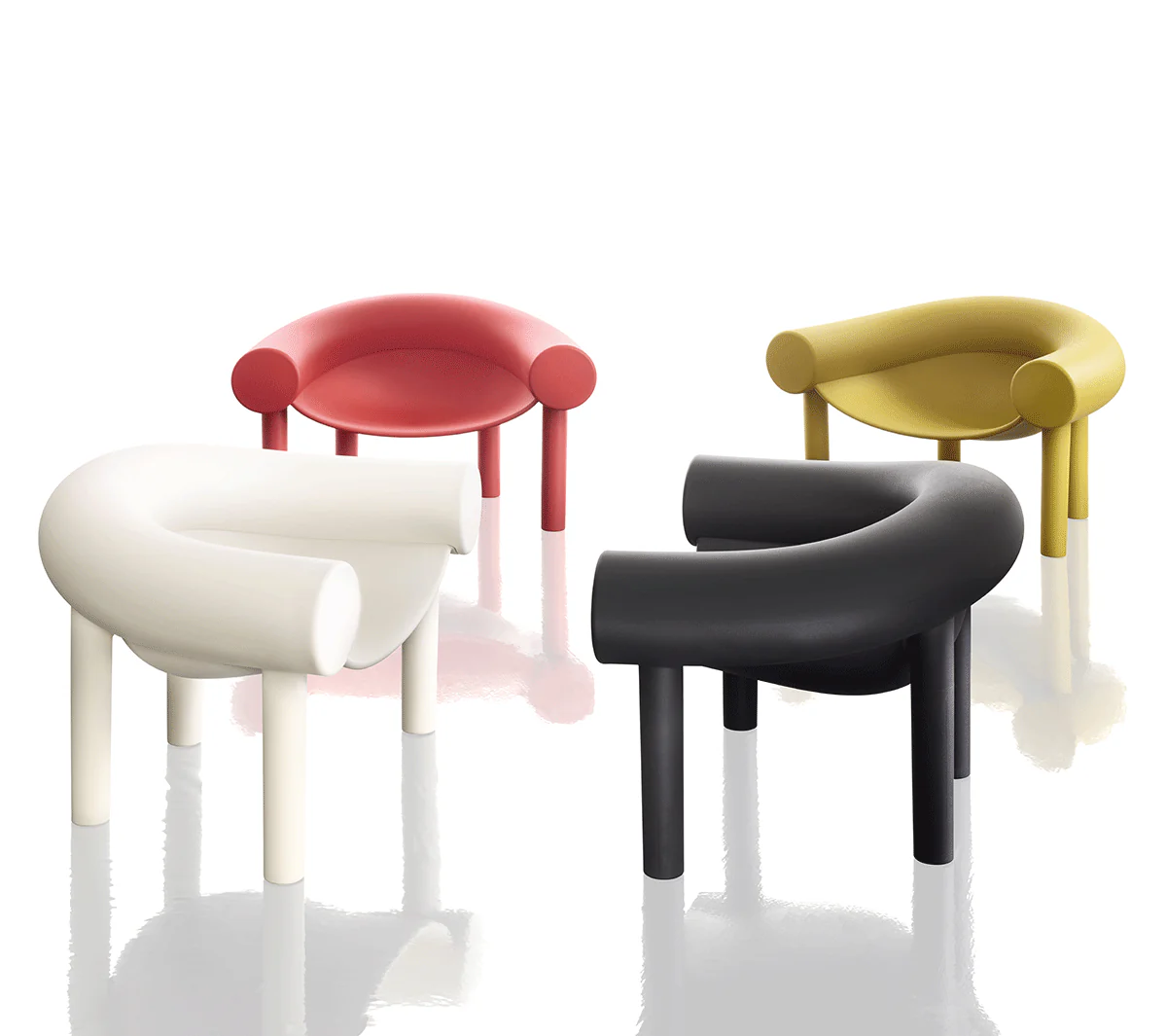 Disegnata da Konstantin Grcic per Magis, Sam Son è una poltroncina dalle forme morbide che sembra ispirata al mondo dei cartoon. Appoggiata su 4 gambe a colonna, la seduta è composta da una scocca dolcemente sospesa, completata da un tubolare a ferro di cavallo che diventa sia bracciolo che schienale offrendo comfort e sostegno. Realizzata in rotational moulding, combina una plastica rigida per la base a un polimero più elastico per la parte superiore. Facile e confortevole, è adatta sia per interni che per esterni.