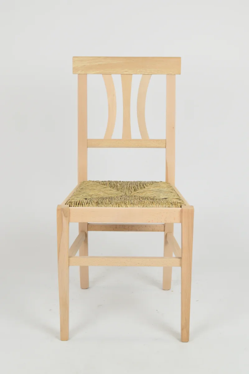 - Materiale: legno di faggio levigato, non trattato e seduta in paglia