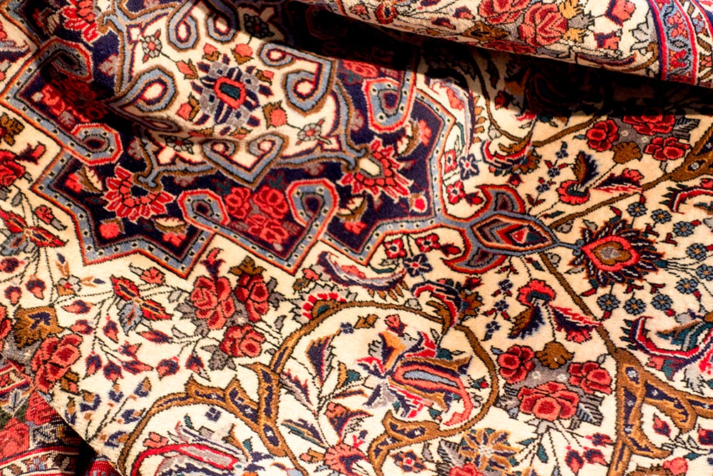 Tappeto resistente, tessuto con lana di eccellente qualità. La trama e i nodi vengono battuti usando pesanti pettini in legno o metallo, così che il vello risulti estremamente compatto, per questo viene detto il “tappeto di ferro della Persia”.