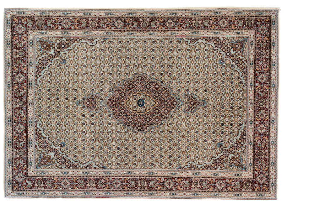 I tappeti di Mood spesso presentano motivi Herati, con o senza medaglione centrale, spesso ha tonalità beige con una sfumatura rosso chiaro o blu. I nodi utilizzano doppia trama e la loro realizzazione spesso è di ottima qualità, si usa talvolta la seta per evidenziare la lucentezza del vello. Tappeto robusto che riesce a sopportare frequenti calpestii quotidiani.
