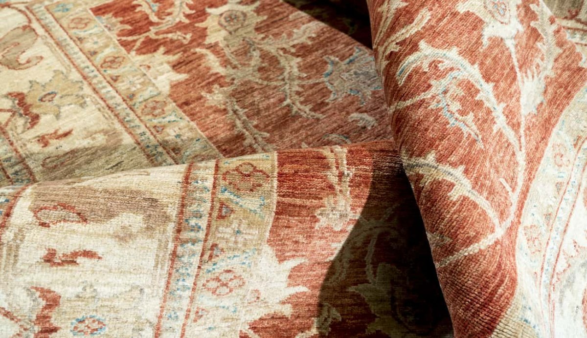 Tappeto realizzato a mano da esperti annodatori afgani con lane ritorte a mano e tinte vegetali.