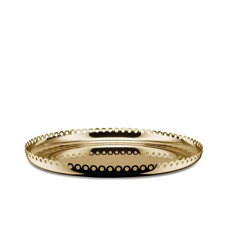 Vassoio con bordo traforato in acciaio inossidabile 18/10, e, con rivestimento in PVD ottone.