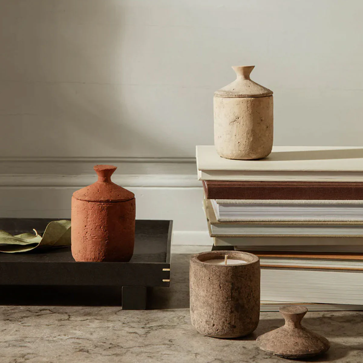 Evocando tesori del passato, la candela Profumata Ura presenta una superficie unica e grezza grazie al processo di pressatura manuale del terracotta. Completata con un coperchio in terracotta, la candela profumata invita a momenti di relax e riflessione. Scegli il tuo profumo preferito per completare il tuo postro preferito che chiami casa.