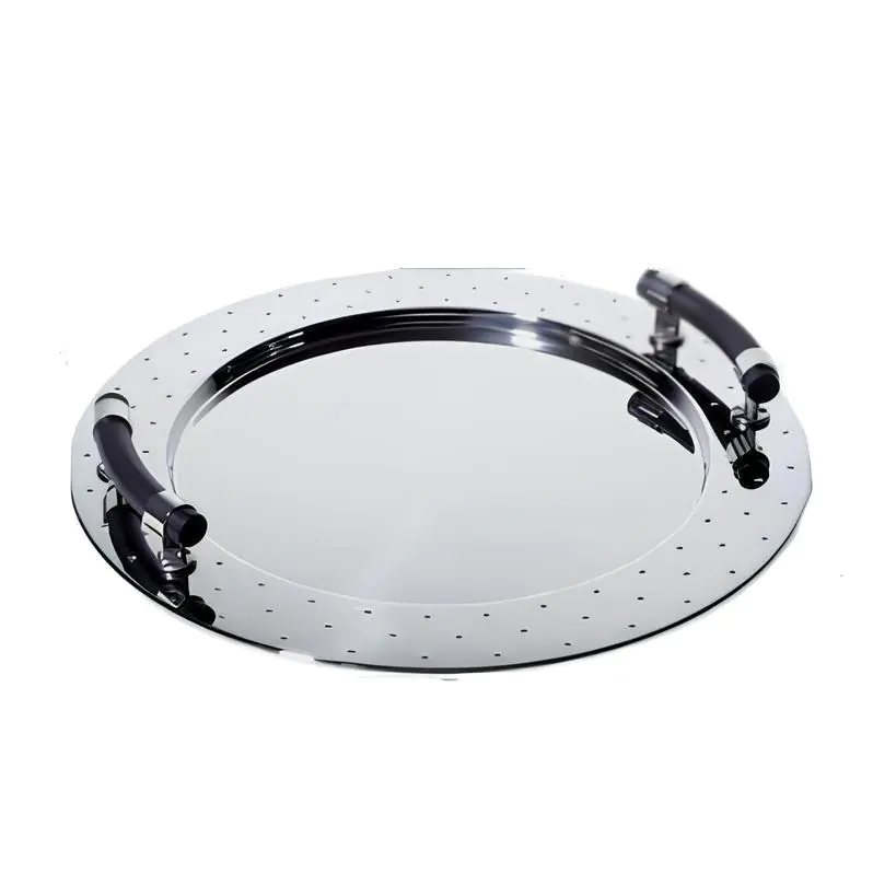 Vassoio rotondo in acciaio inossidabile 18/10 lucido con manici in PA, nero.