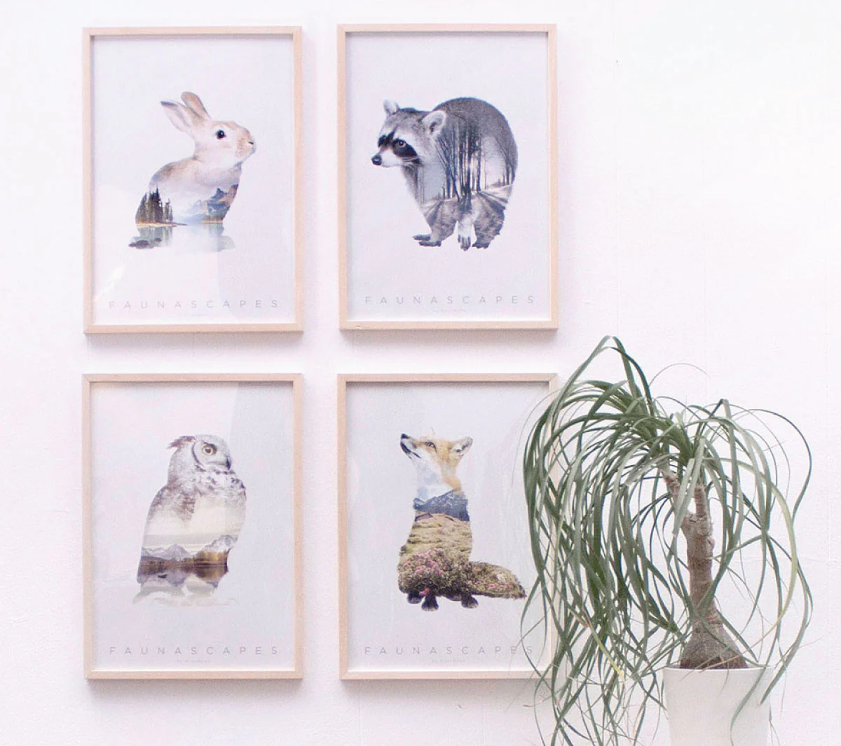 Poster Faunascape con lupo di WhatWeDo. Stampato su Cyclus Offset, che è un bianco naturale, non patinato su carta riciclata offset che è eco e certificata FSC. Imballato in un tubo triangolare con l’immagine del poster sul fronte (telaio escluso).
