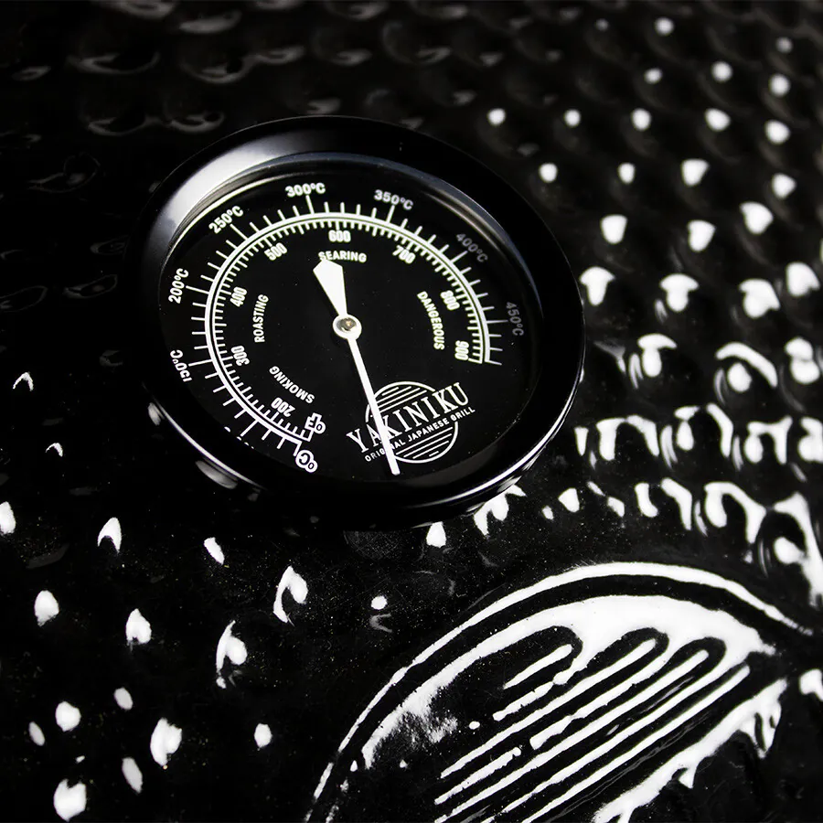 Il Kamado GRANDE YAKINIKU è costruito per durare, con un design robusto che resiste alla prova del tempo, rendendolo un investimento sicuro. Con la giusta cura e manutenzione, questo grill vi accompagnerà per anni, diventando un fedele compagno nelle vostre avventure culinarie. Realizzato in ceramica resistente, emana un’eleganza senza tempo, combinando funzionalità e stile. La ceramica garantisce un’eccellente capacità di isolamento termico, trattenendo il calore anche a temperature elevate. La base, i tavolini e il telaio, tutti completamente neri, conferiscono a questa Black Edition un impatto visivo notevole sia nel giardino che nella cucina all’aperto.